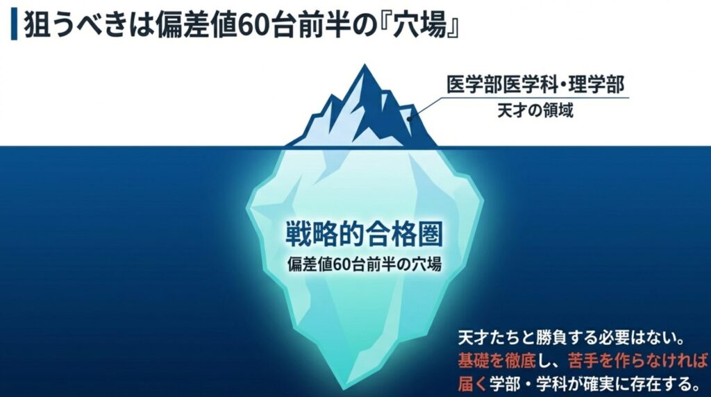 もちろん「簡単」というわけではありませんが、医学部医学科や理学部のような「天才たちが集う場所」とは異なり、基礎を徹底して苦手を作らない戦略で十分に合格ラインに届くのがこれらの学部の特徴です。